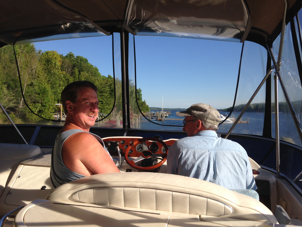 This is one of my treasured photos of my husband and my Dad. A moment in time captured as they were yukking it up. They had just finished a technical project on the boat and it was time to relax and enjoy the evening with family and friends.