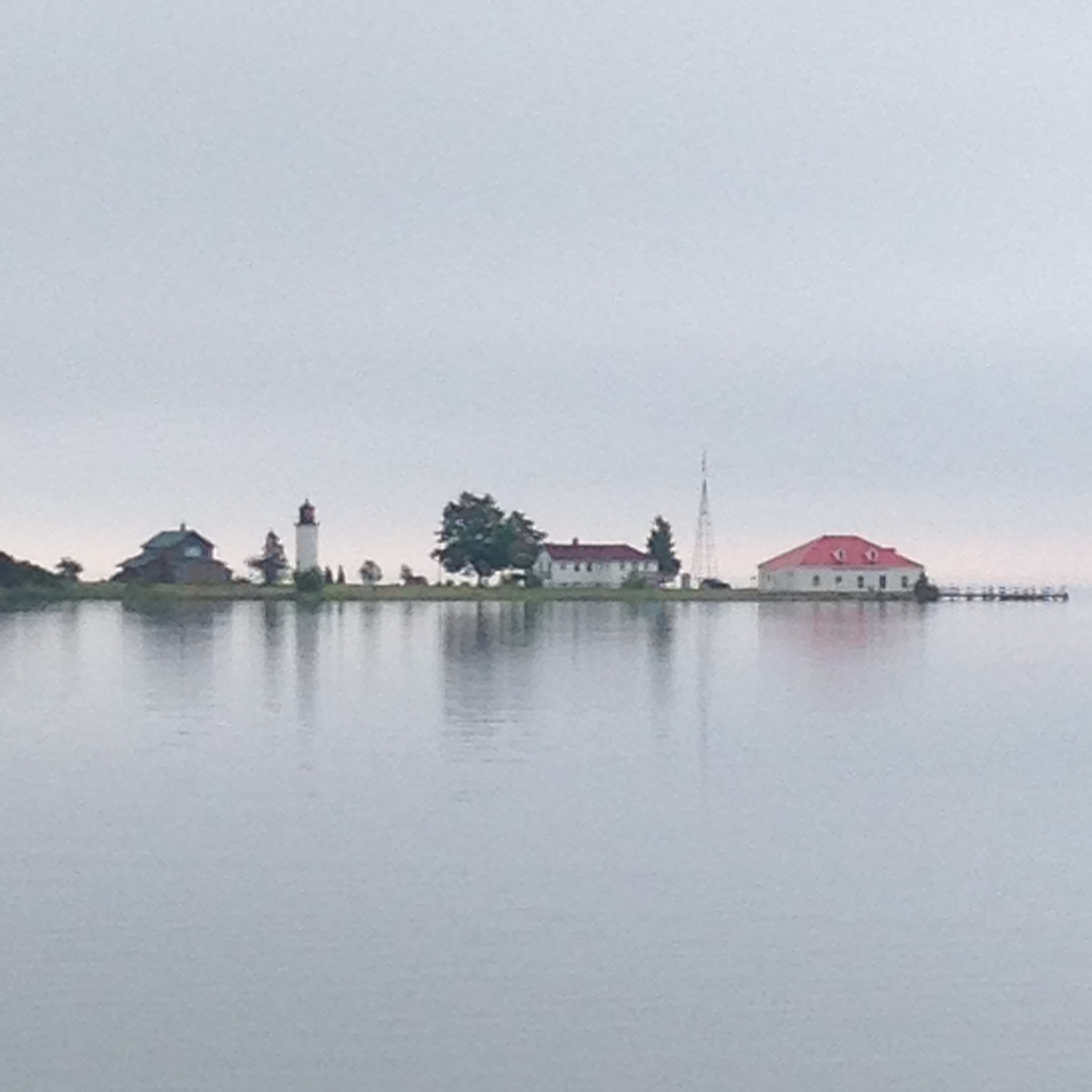 It was a quiet morning at the marina on Beaver Island. I decided to photograph the morning light and capture the stillness of the water, and its reflections from the lighthouse. This is Lake Michigan on a misty, gray morning in June. As I stepped off