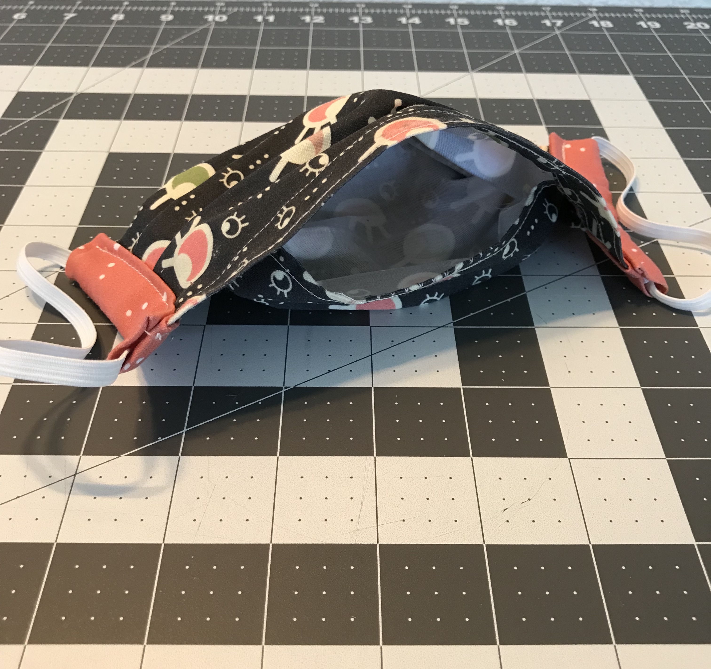 THE PLEATED FABRIC FACE MASK handcrafted with eco-freindly organic cotton which is biodegradable. Prewashed soft cotton. Designed with attention to detail, including a pouch for inserting a filter. A comfortable design with two adjustable 1/4 inch elastic bands for the ears that slide through side chanels. Nose support is a 3/8 inch high bendable plastic coated wire. — A Made-to-Order item. Artwork/design is from my Tadpole Collection featuring the "all seeing eye". Please Note: No refunds, returns or exchanges with personal care protection items. — $25.00 includes tax and shipping to United States.