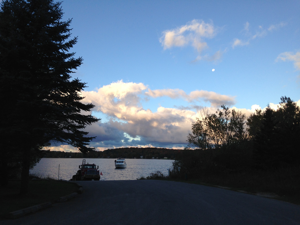 The road that leads to the boat launch. Seasons come and seasons go, but the best are those we spend on the boat. Do you see the moon? Looking forward to going down this road again soon with my family.